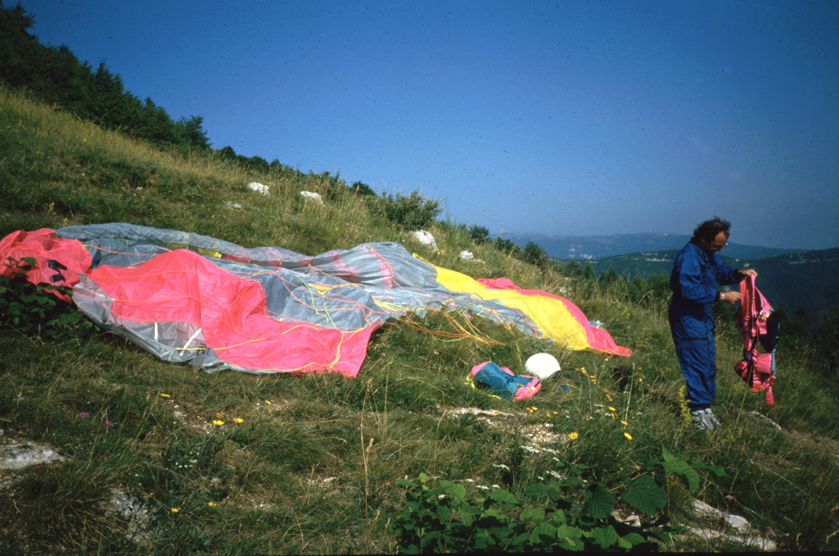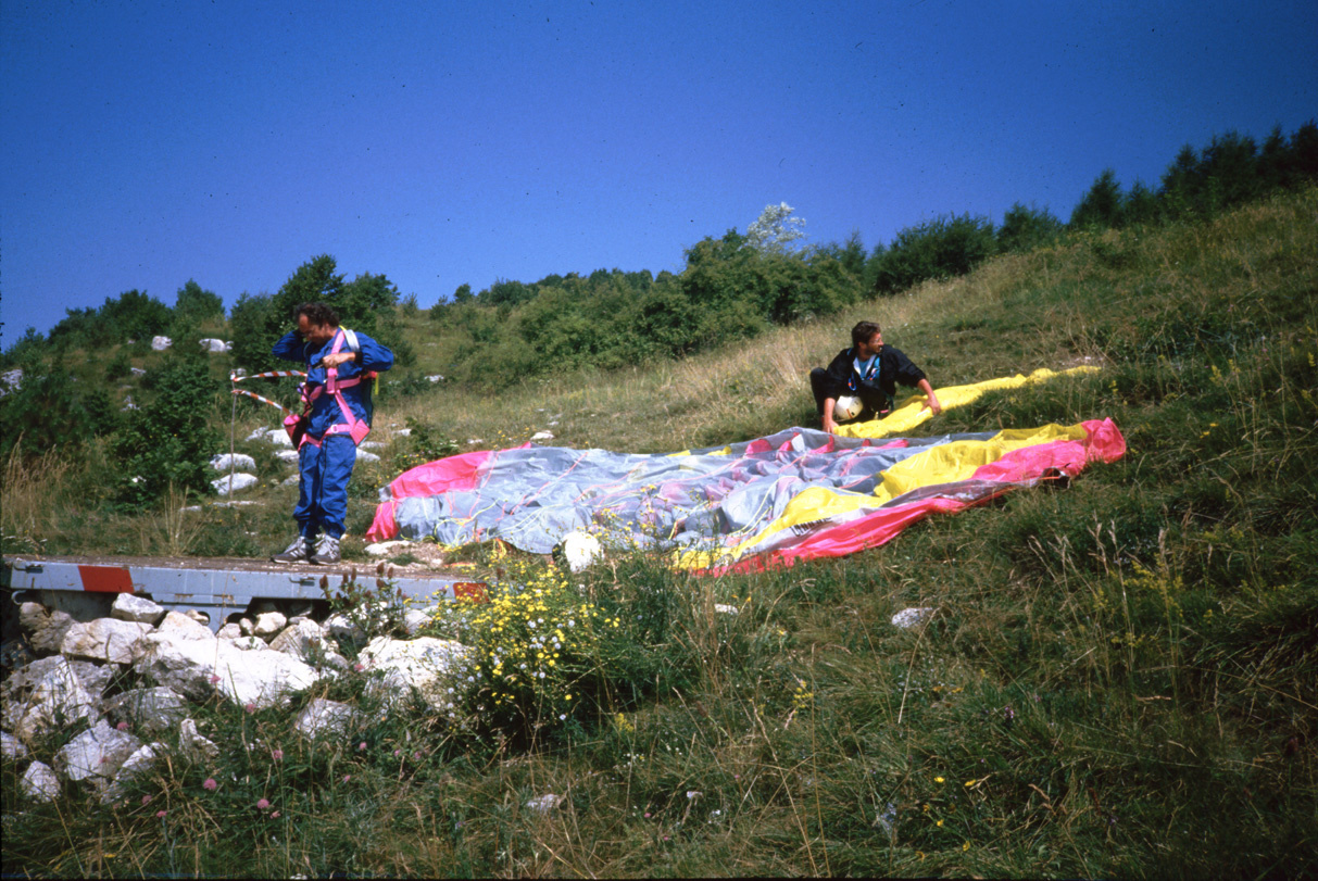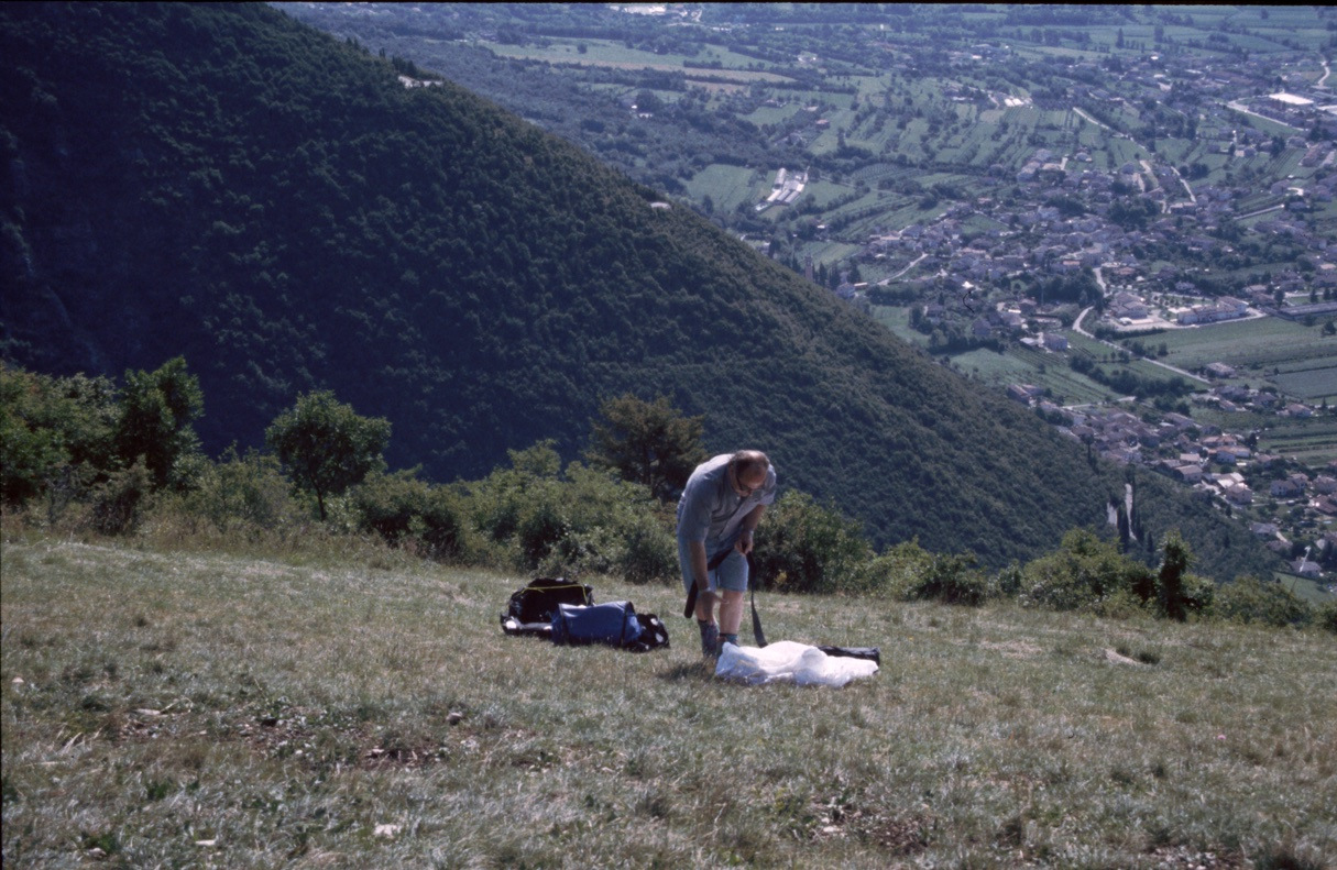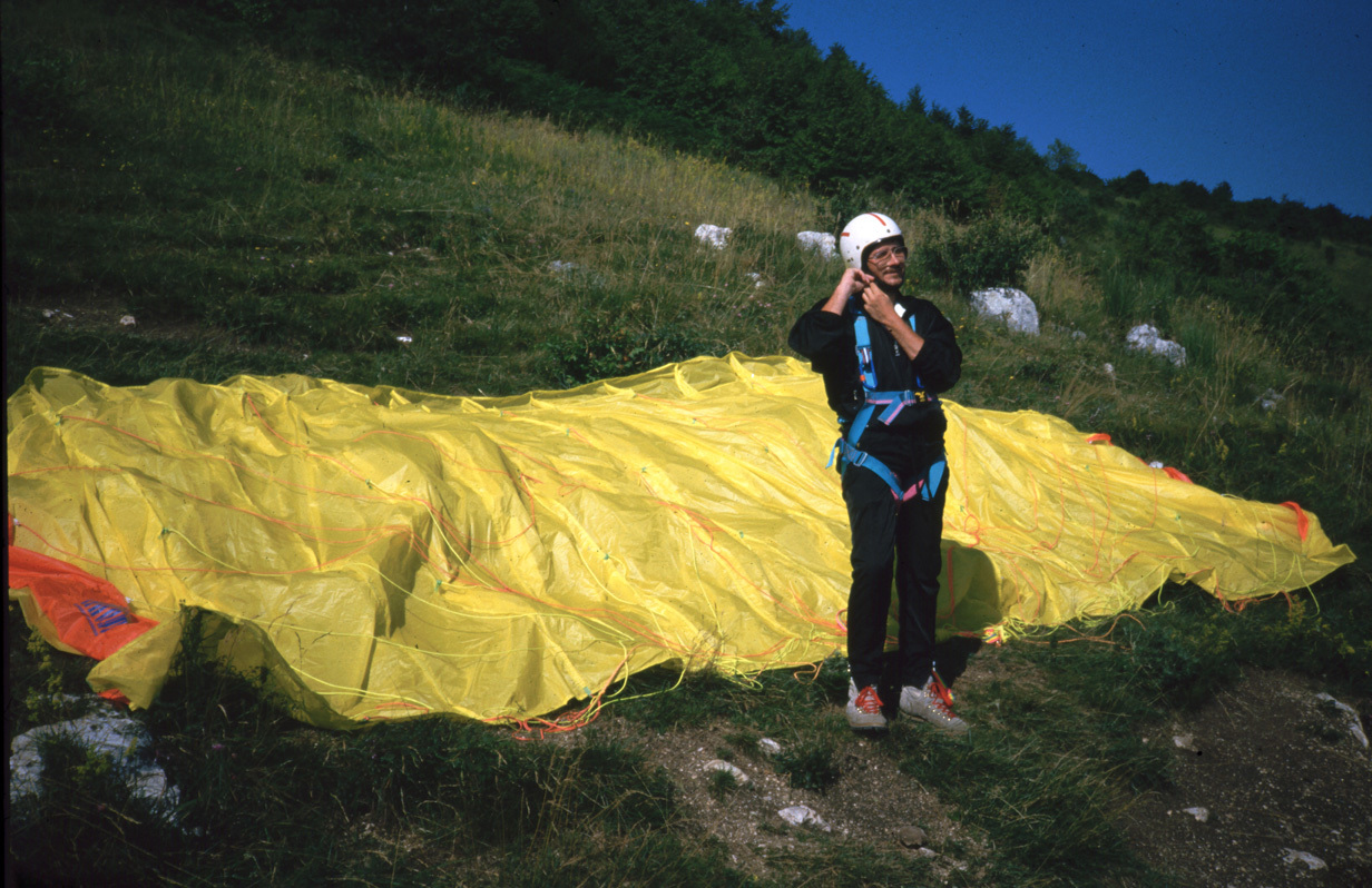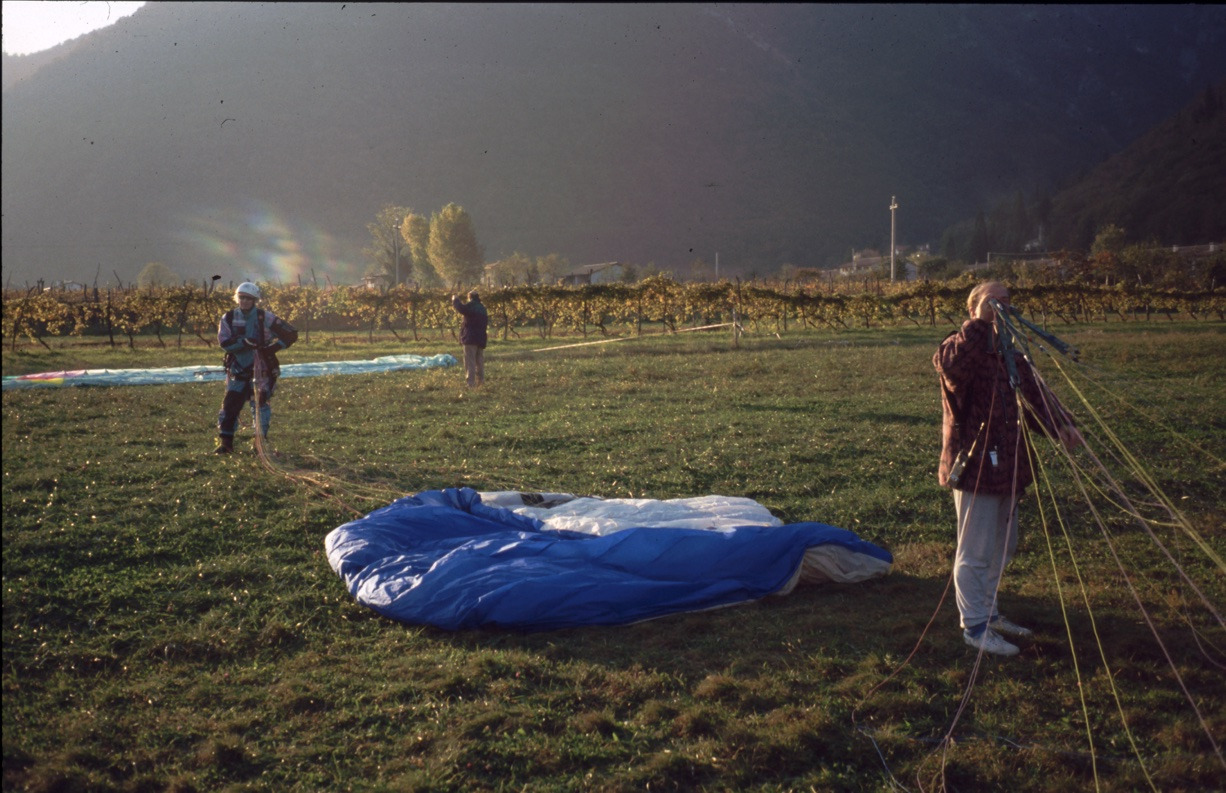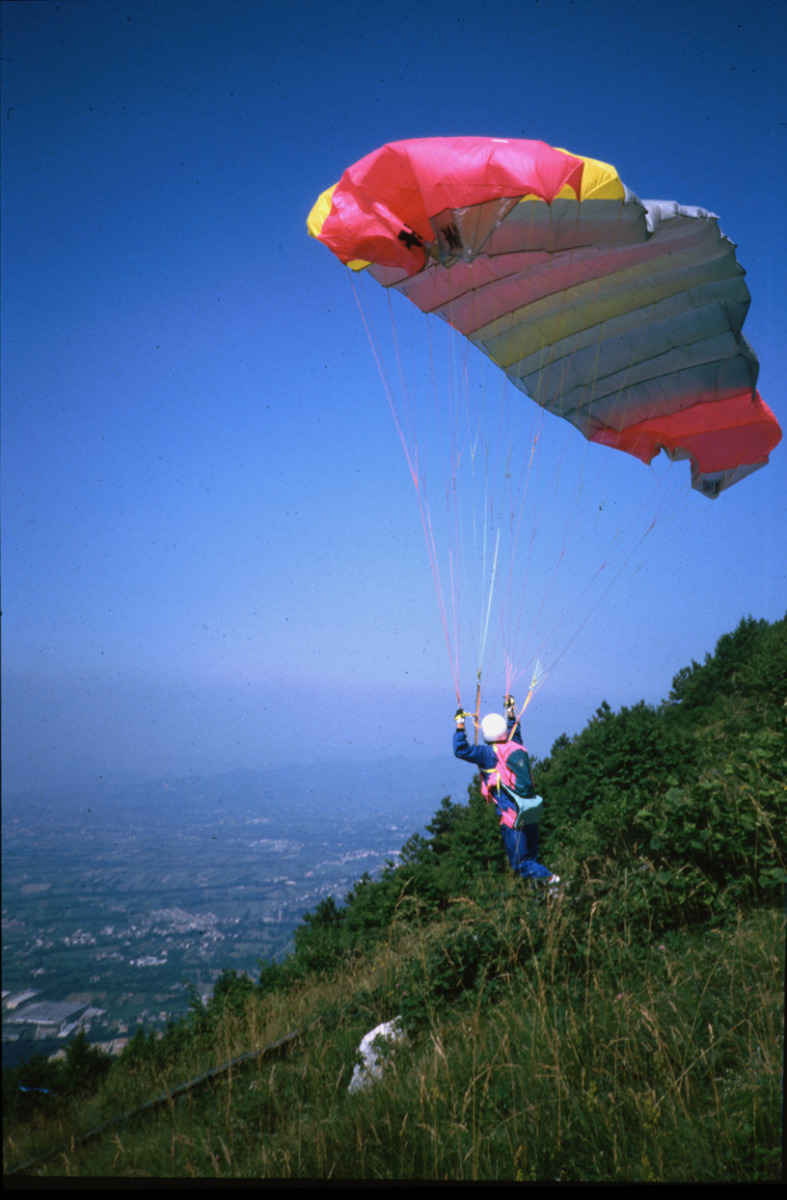 Die ersten Flüge mit dem Gleitschirm in Bassano 1988 mit Offe